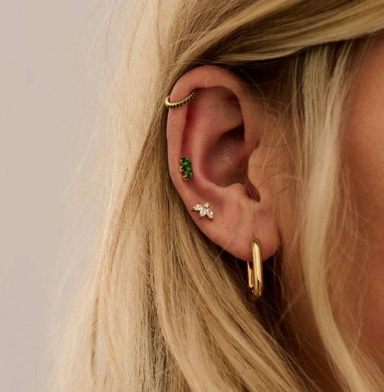 This Emerald Pave Metal Clicker Hoops adds a gorgeous pop of colour to any piercing. Featuring a gorgeous row of emerald pave cubic zirconia stones on a simple gold piercing clicker hoop earring. Please note, piercing jewellery is non-returnable. CODE: ORE27260