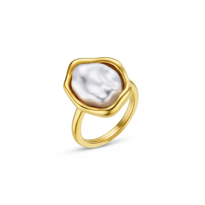 The Organic Molten Pearl Ring features a beautifully sculpted, molten metal design that wraps around a stunning, faux pearl. Its asymmetrical shape makes it a standout piece for any occasion. CODE: ORE30588/SM