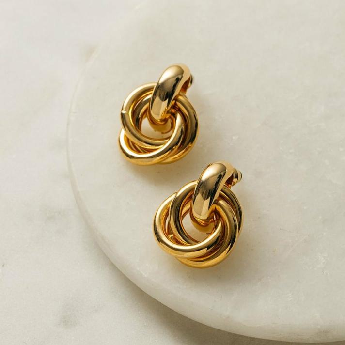 Make a statement with our Statement Interlocking Earrings in Gold. Featuring gold hoops interlocking and attached to a stud earring fastening, these are the perfect addition to any ear stack. Please note, earrings are non returnable unless faulty. CODE: ORE26014