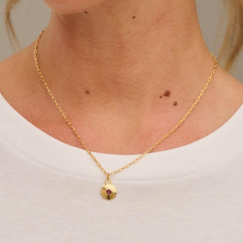 Shop the latest range of birthstone jewellery with our Birthstone Necklace Made With Swarovski Crystals, pick your birth month or simply your favourite colour. These birthstone necklaces make the perfect jewellery gifts for any loved one. Featuring a classic gold chain necklace holding a small disc charm with etched detail, centred with a gorgeous Amethyst Swarovski crystal. CODE: ORE27340